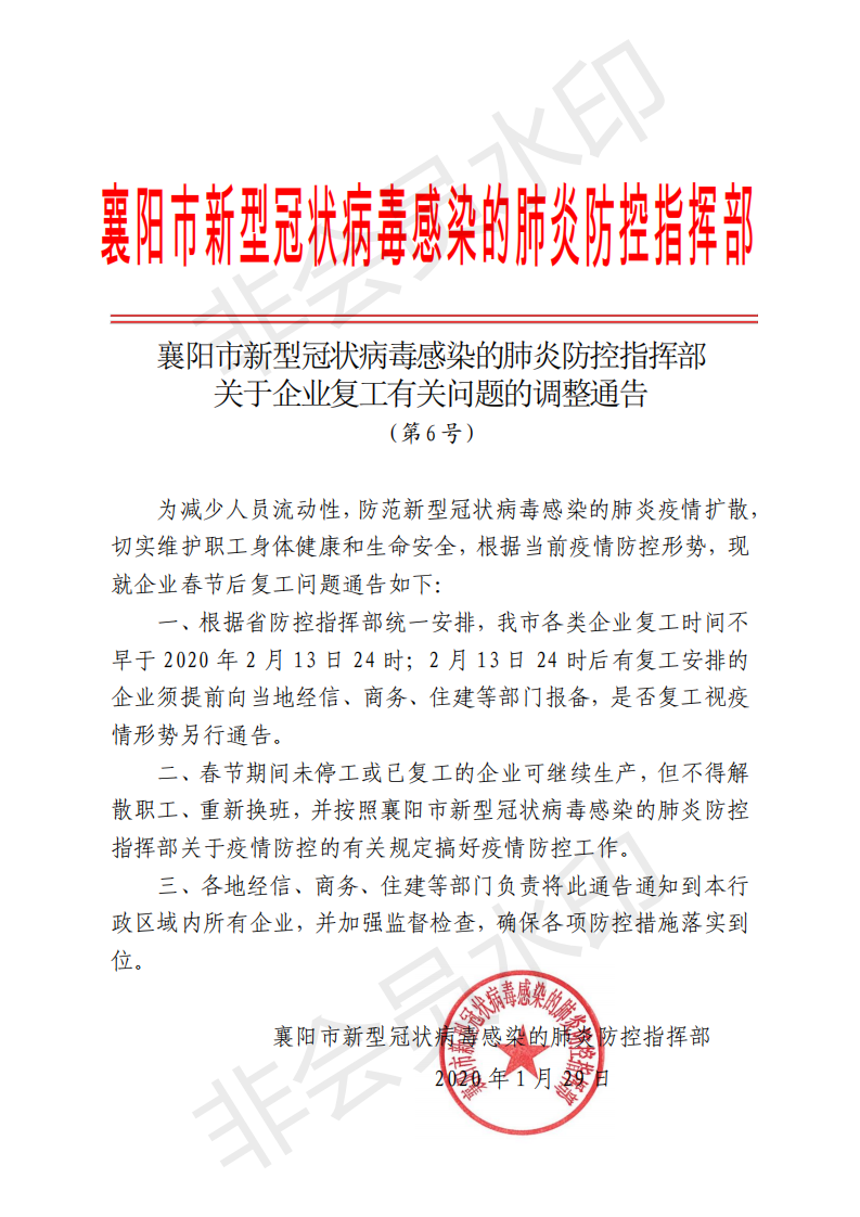 最新!襄陽(yáng)調整企業(yè)春節后復工時(shí)間