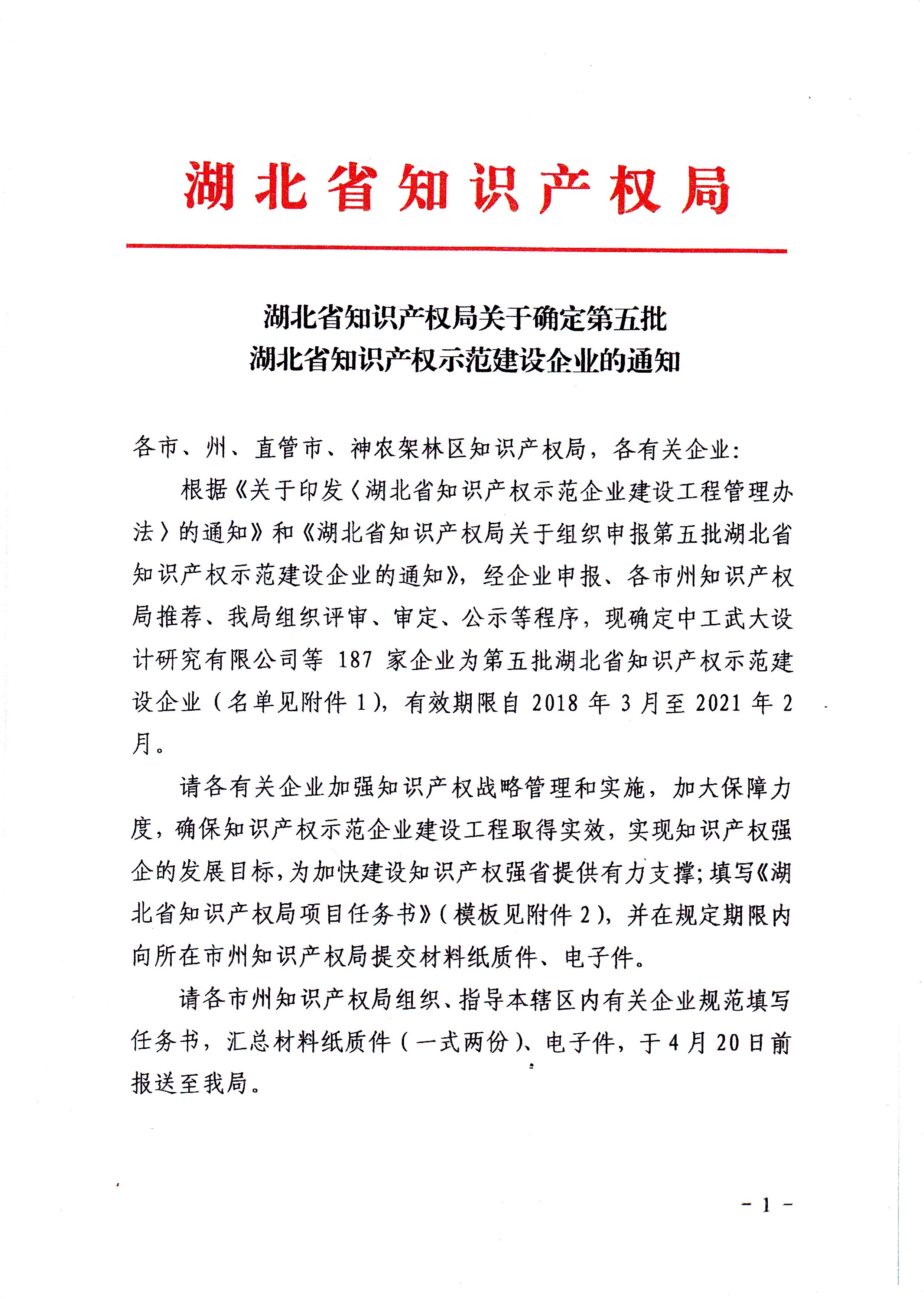 (第五批湖北省知識產(chǎn)權示范建設企業(yè))